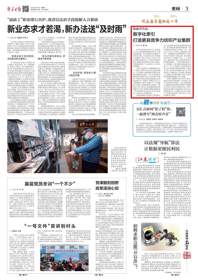 刊發媒體:《新華日報》3月3日第3版